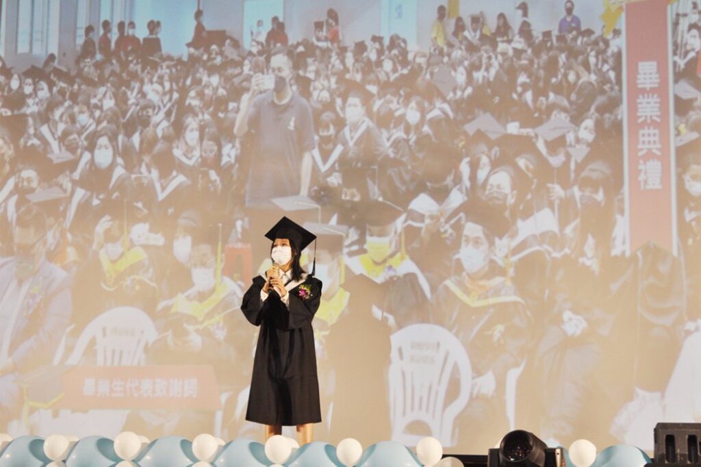 Thay mặt cho các bạn sinh viên quốc tế nói chung và du học sinh Việt Nam nói riêng, bạn Huỳnh Minh Thư – tân cử nhân khoa Marketing đã bày tỏ những suy nghĩ trong niềm hạnh phúc: “Ngày hôm nay, em vô cùng vinh hạnh khi được đại diện cho các bạn tân cử nhân quốc tế để phát biểu cảm nghĩ của mình. Trước hết em xin cảm ơn các quý Thầy, Cô đã vô cùng nhiệt huyết giảng dạy, bao dung và yêu thương chúng em trong suốt quá trình 4 năm học tập tại đây. Chúng em đặt chân đến Đài Loan đã được bốn năm, trong suốt khoảng thời gian đó chúng em đã phải nổ lực học tập rất nhiều, nổ lực để làm việc kiếm tiền trang trải cho chi phí sinh hoạt tại nơi đất khách quê người và ngày hôm nay em thật sự cảm thấy bồi hồi và xúc động khi hoài niệm về khoảng thời gian vừa qua. Em vẫn còn nhớ như in lúc em mới đến đến Đài Loan, những cảnh vật và con người trước mắt em đều vô cùng lạ lẫm, lúc đó có rất nhiệu việc mà em không biết phải giải quyết như thế nào. Trong lòng luôn cảm thấy bất an và nhiều đêm không ngủ ngon giấc. Nhiều lúc em tự hỏi chính bản thân rằng: “Con đường mình lựa chọn có đúng không? Mình đến Đài Loan là đúng hay sai? Bản thân mình muốn gì?”, những câu hỏi ấy luôn xuất hiện trong đầu em. Buồn nhất là lúc dịch Covid-19 bùng phát trên toàn cầu, việc trở về Việt Nam thăm gia đình là một việc vô cùng khó khăn đối với tất cả hoc sinh nước ngoài như chúng em. Khoảng thời gian đó thật sự em rất là buồn và tủi thân. May mắn thay ở đây chúng em có các Thầy, Cô luôn quan tâm chăm sóc và hỗ trợ chúng em những lúc khó khăn như thế này. Ngoài ra những người bạn của em luôn cùng ở bên em trải qua những niềm vui và nỗi buồn. Thật sự rất cảm ơn mọi người !!! Ngày hôm nay đây, trong khoảnh khắc này em muốn nói với tất cả mọi người ở bên dưới là “Chúng ta đã tốt nghiệp rồi !!!” và em cũng xin cảm ơn tất cả các Thầy, Cô đã vất vả chăm sóc cho chúng em, đặc biệt cảm ơn Thầy Quốc và Cô Linh cùng các giáo viên quản lý sinh của văn phòng quốc tế đã luôn hỗ trợ và giúp đỡ cho chúng em trong suốt quãng thời gian học tập tại trường Tỉnh Ngô”.